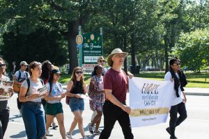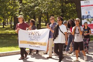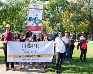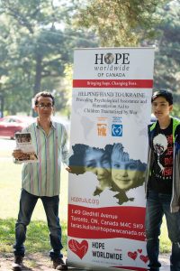 Our volunteers marched to support The Helping Hand for Ukraine project. They also handed out flyers to members of the public to promote the project, which is partly funded by HOPE worldwide Canada. This project is run by HOPE worldwide Ukraine to provide socio-psychological assistance to children suffering from war trauma.